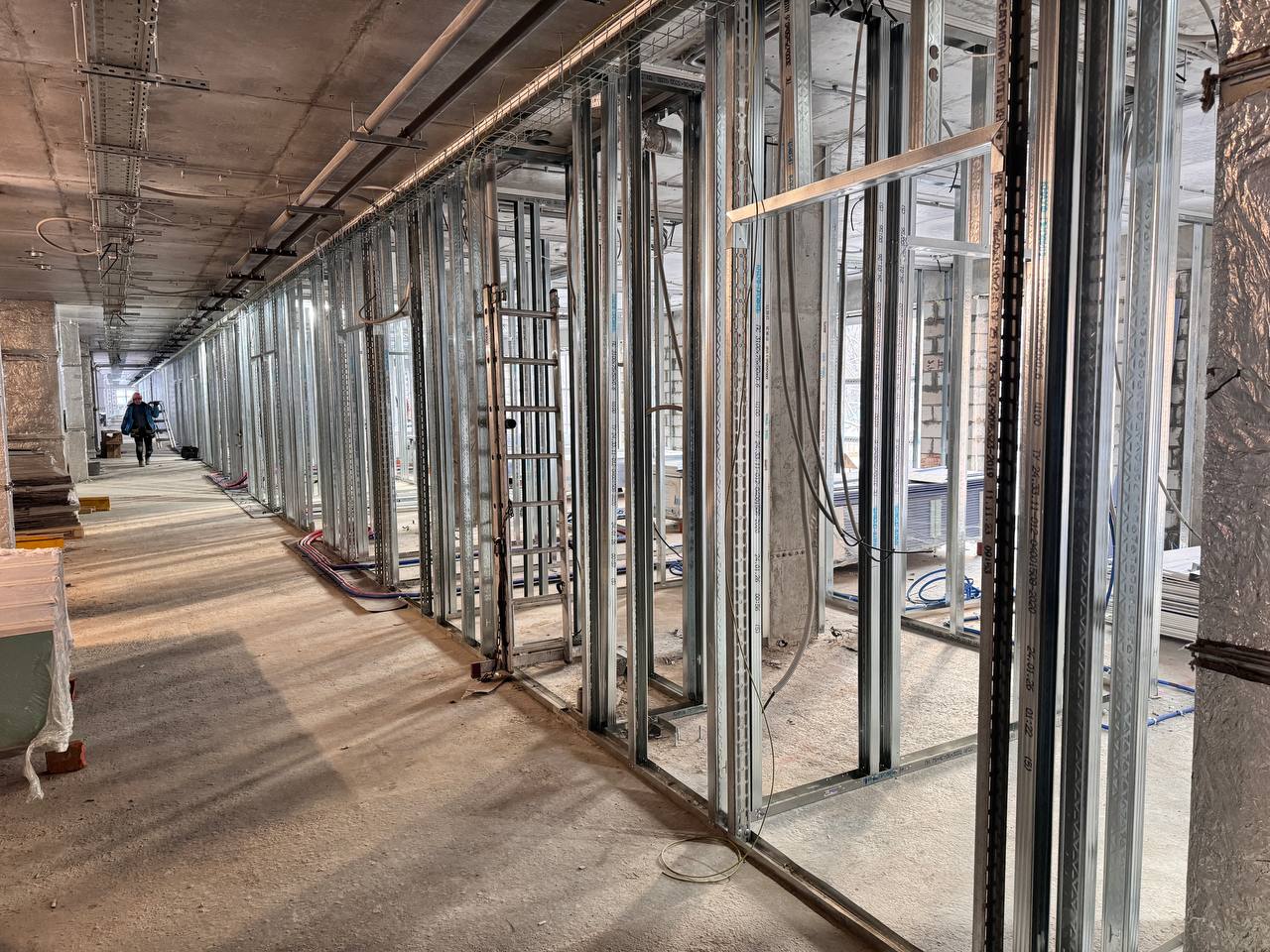Гостиница на ул. Окулова, 4 готова на 45%. Кровля выполнена на 85%, ведутся работы по укладке финишного покрытия, также выполнен запуск тепла по временной схеме. Продолжаются работы на всех пяти этажах нового объекта: строители занимаются устройством сетей здания, установкой окон и перегородок номерного фонда.